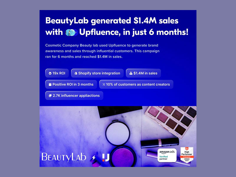 BeautyLab, a skincare brand, partnered with Upfluence, an AI-powered tool, to automate its digital marketing efforts. In just three months, the campaign resulted in a 19x return on investment (ROI) and generated $1.4M in sales.
