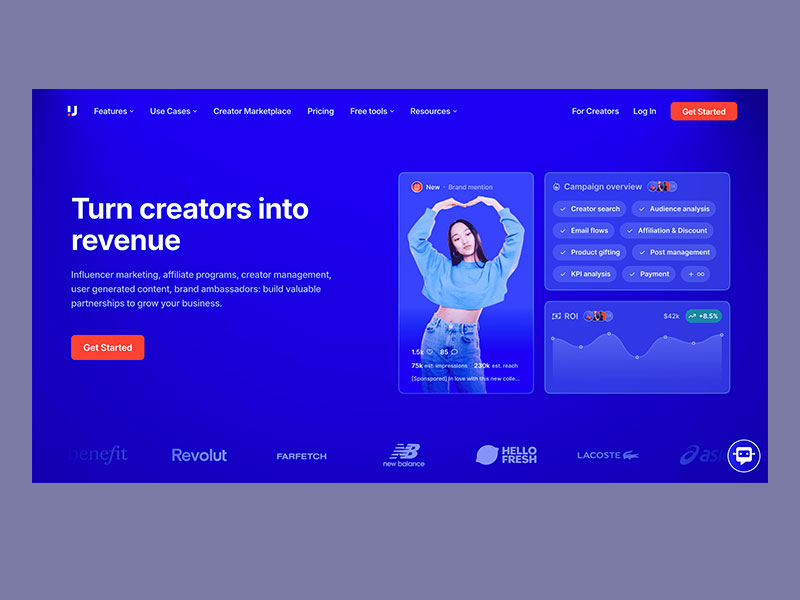 Upfluence allows businesses to find influencers using data insights like audience demographics, engagement rates, and more. It even integrates with eCommerce platforms to identify influencers within your existing customer base.