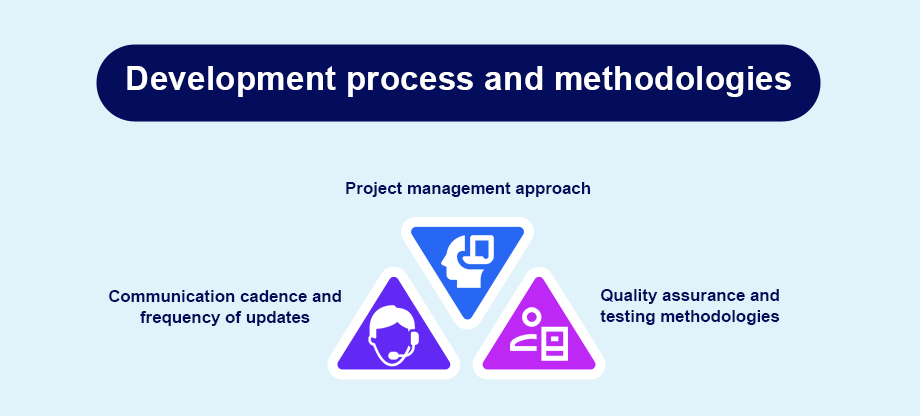 Ask about relevant experience, team composition, process (Agile/Scrum/Kanban), testing, security practices, communication cadence, and references.