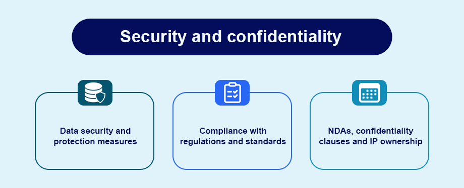 At minimum: encryption, access controls, regular audits, backups, and clear policies for data handling. For regulated projects, confirm compliance requirements early.