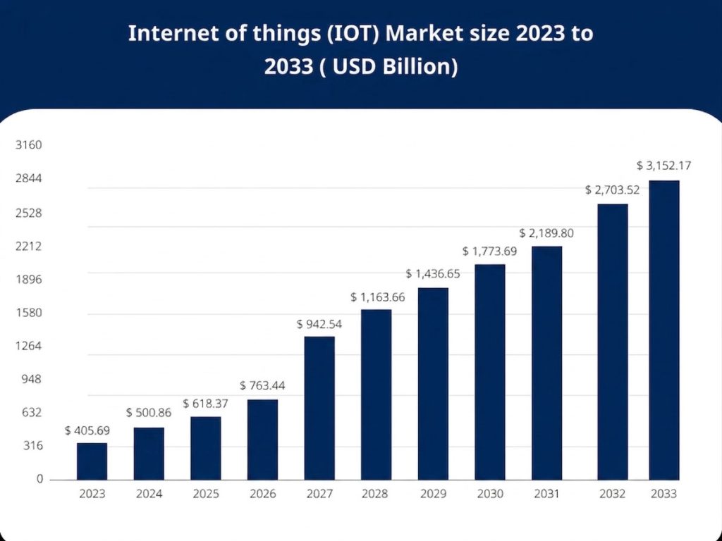 - The global IoT market is expected to grow at a massive CAGR of 22.68%, potentially reaching trillions in value over the coming decade.